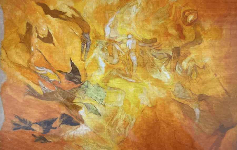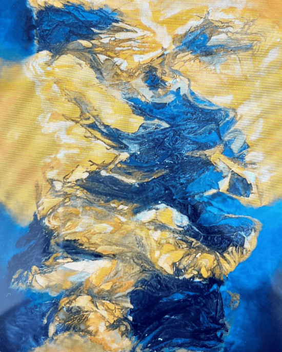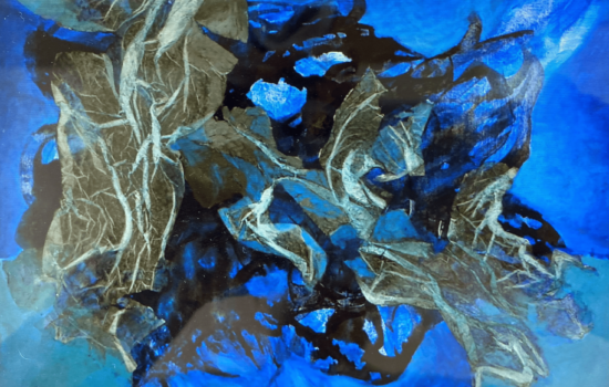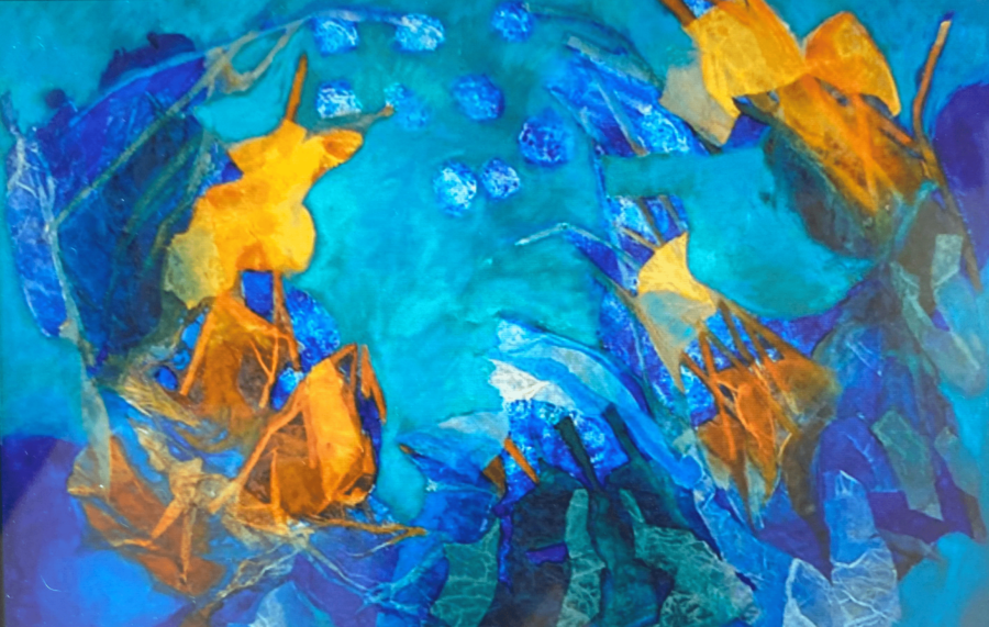 Mixed technique with rice paper on fabric, 90 x 60cm. 35.4 x 23.6 inches.