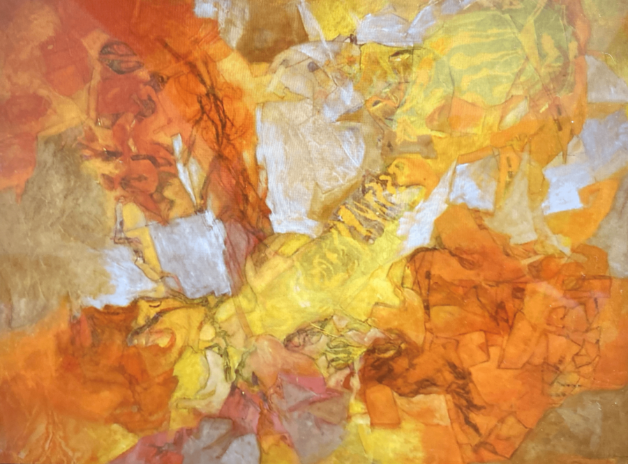 Mixed technique with rice paper on fabric, 100x 81cm. 39.3 x 31.8 inches.