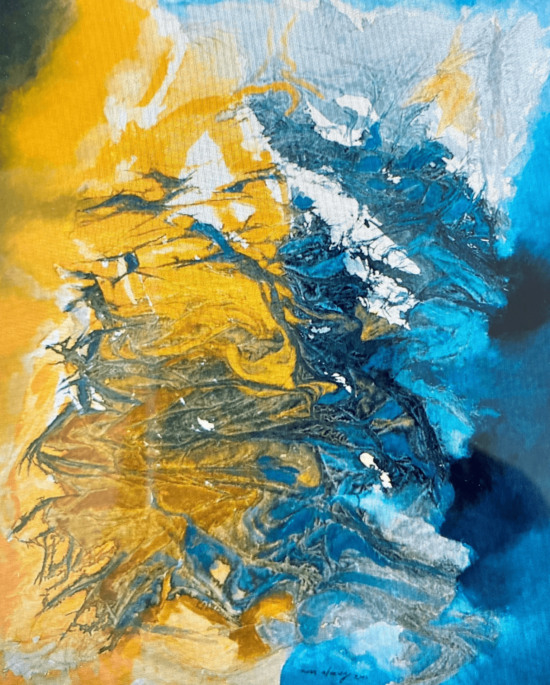 Mixed technique with rice paper on canvas, 100 x 81cm. 39.3 x 31.8 inches.