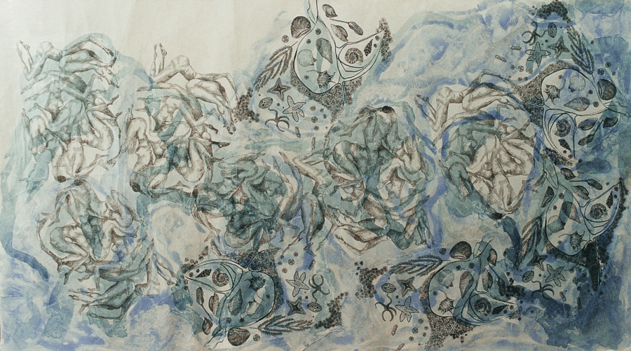 Ink drawing on rice paper, 150 x 85cm. 59 x 33.4 inches.