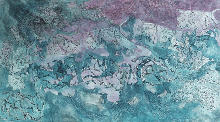 This series is made in layers of rice paper, used in chinese painting. It is a mixed technique, painted with watercolor based in original pigments.